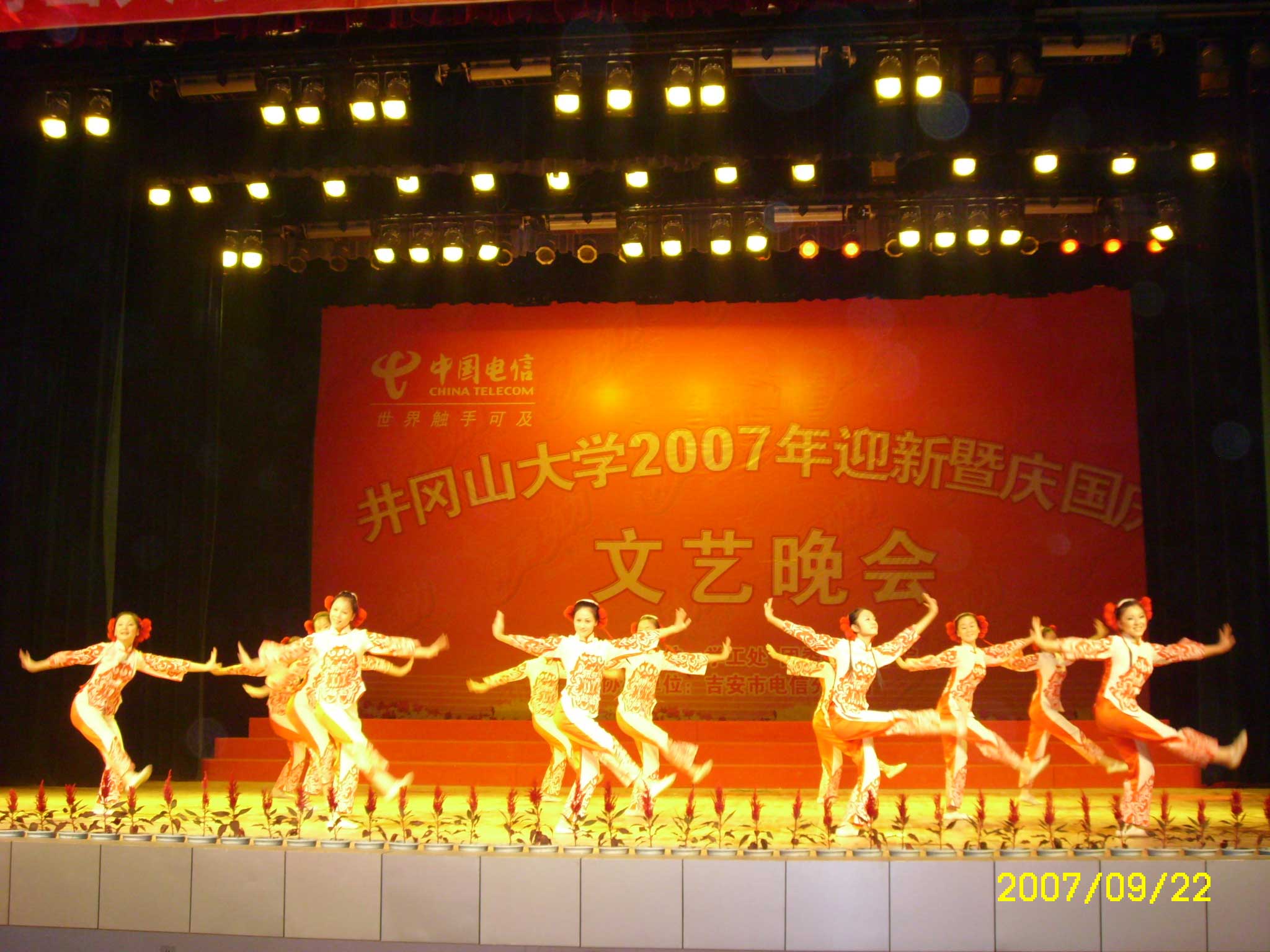 9月22日晚,由学工处、团委、艺术学院主办、吉安电信分公司协办的2007年迎新生暨庆国庆文艺晚会隆重举行,校领导金桂英、王伴青等与千余名师生到场观看。