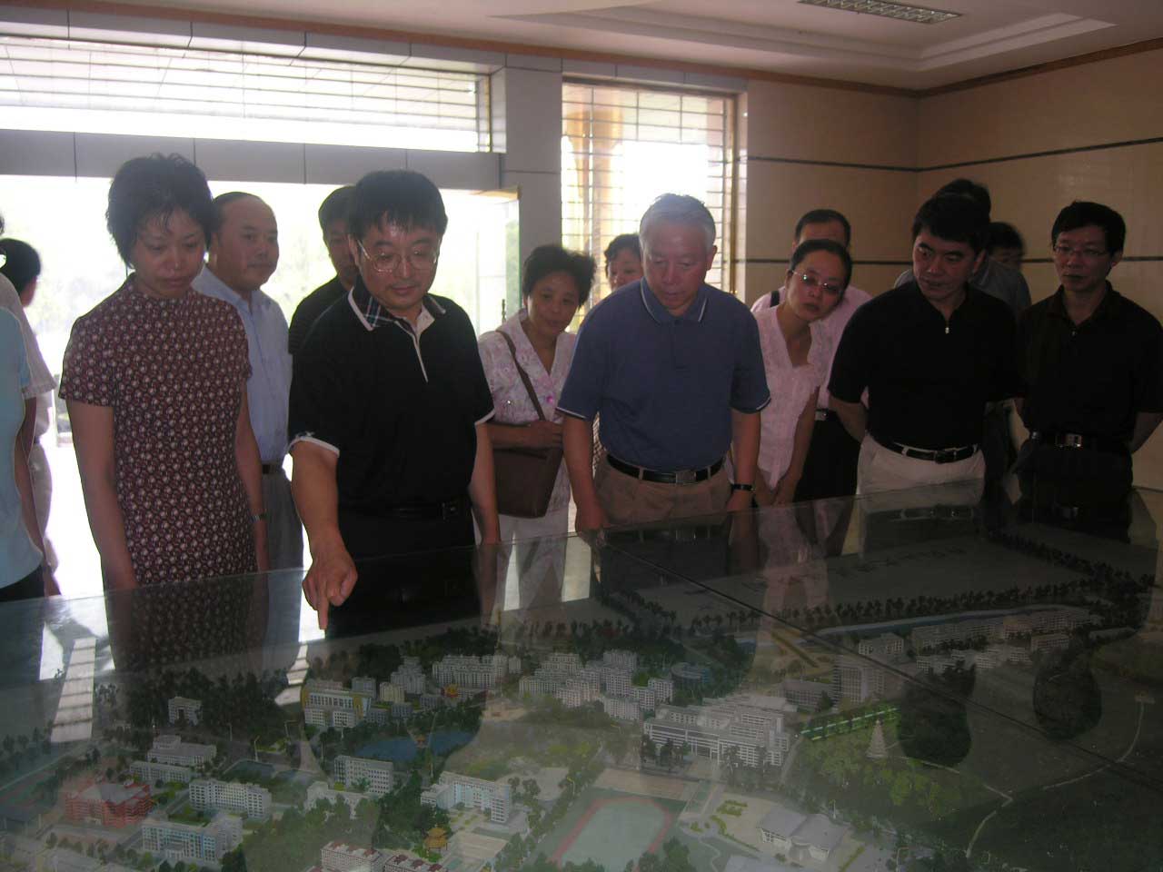 校领导万继抗、张泰城、金桂英、桂国庆陪同秦绍德一行参观了校园。