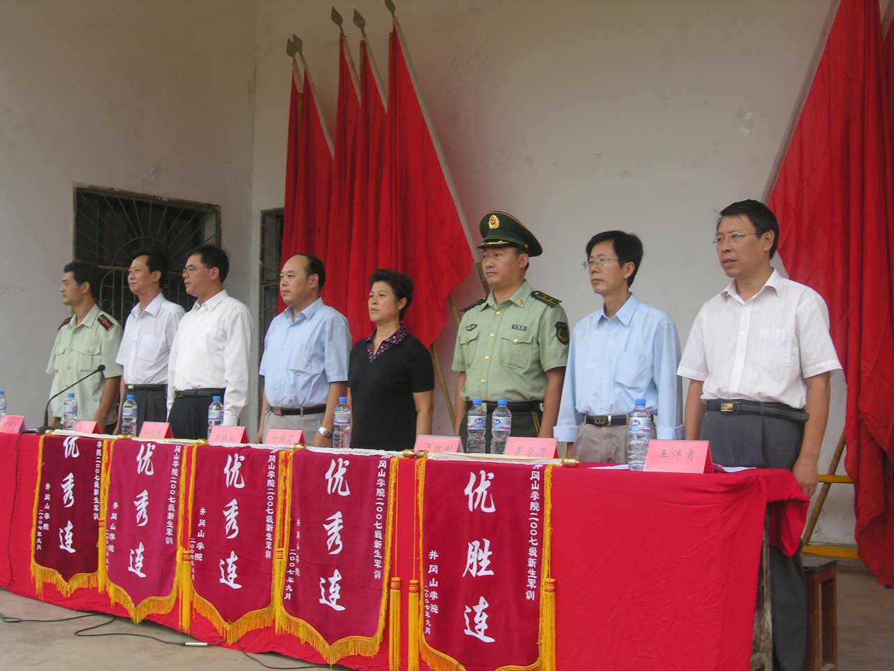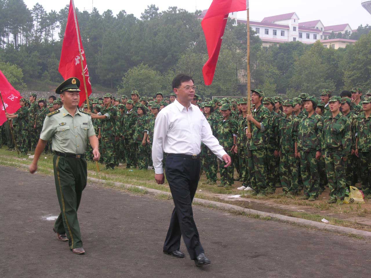 9月21日上午,2007级新生军训阅兵暨会操大会在主校区和医学校区隆重举行。在家的校领导万继抗、金桂英、桂国庆、康泰、罗学渭、王伴青出席了大会,吉安市消防支队领导颜红刚出席了主校区大会,吉安市武警支队领导彭四平出席了医学校区大会。副校长桂国庆检阅了新生军训队伍,副校长王伴青作了总结讲话。
