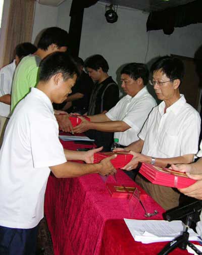 郑长贵宣读了集团的表彰决定后,校领导和集团党委成员分别为先进集体颁发了锦旗,为先进个人颁发了荣誉证书。