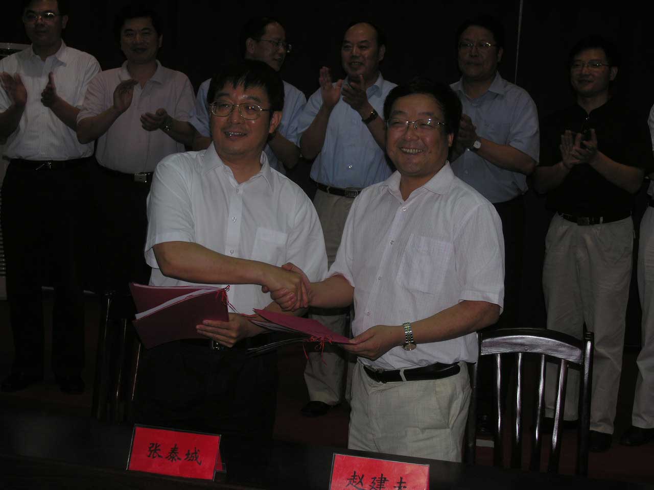 同济大学副校长赵建夫与我校校长张泰城分别代表两校在协议书上签字