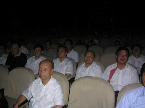 市委书记黄建盛,市委副书记、市长周萌,在家的市党政军领导,中国井冈山干部学院副院长张泰城、周金堂,校领导万继抗、张泰城、孙甦、金桂英、桂国庆、郭名根、罗学渭等到场观看