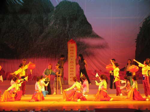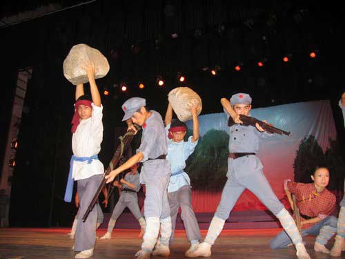 由中国井冈山干部学院、同济大学和我校联合创编,我校大学生演出的音乐舞蹈史诗《井冈山》,以舞台表演的形式,真实再现了1927年10月至1930年2月,毛泽东、朱德等老一辈无产阶级革命家创建井冈山革命根据地艰苦卓绝的斗争史。整台节目由“序”、“引兵井冈”、“星火燎原”、“伟大创举”、“尾声”五个部分共20多个歌唱、舞蹈等节目组成。