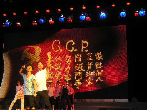 6月6日,我校参加音乐舞蹈史诗《井冈山》的全体演职员在同济大学大会堂进行了演出前的紧张排练。大家根据节目主题和音乐,认真捉摸修正每一个细节,力争以最出色的演技把一台完美的节目奉献给观众。同济大学有关工作人员给予了大力支持。副校长罗学渭始终在现场指导。