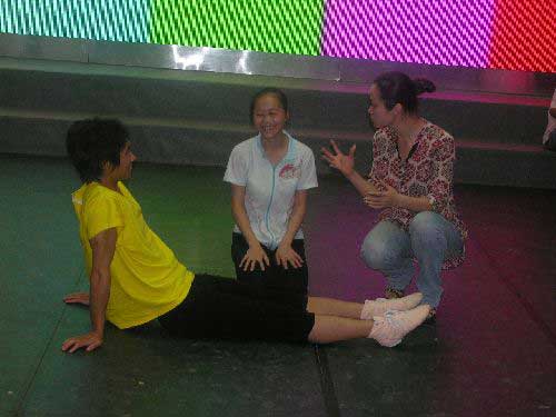 上午、下午、晚上,演职员始终没有休息,大学生演员在指导教师指挥下反复排练,没有人叫苦叫累,音乐、音响、灯光、视频、字幕的工作人员积极配合,排练工作进展顺利,现场效果越来越好。