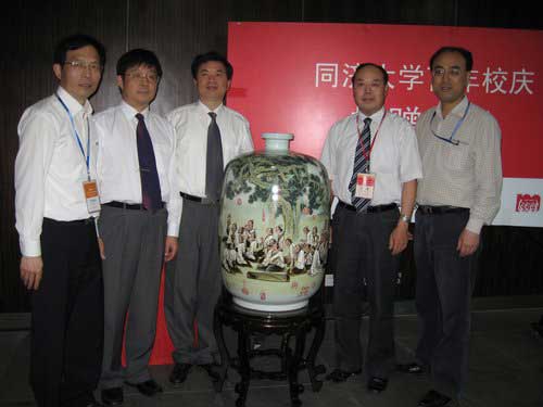 5月20日,是同济大学建校100周年纪念日。学校党委书记万继抗、校长张泰城应邀出席同济大学百年校庆庆典大会,并代表学校向同济大学捐赠了由景德镇陶瓷名家创制的《孔子施教图》釉上粉彩瓶。同济大学党委书记周家伦、校长万钢对万继抗书记和张泰城校长到校参加同济大学百年庆典表示热烈欢迎和感谢。出席同济大学百年庆典的教育部副部长吴启迪会见了万继抗书记和张泰城校长。同济大学党委副书记周祖翼代表同济大学向我校颁发了捐赠证书。(办公室)