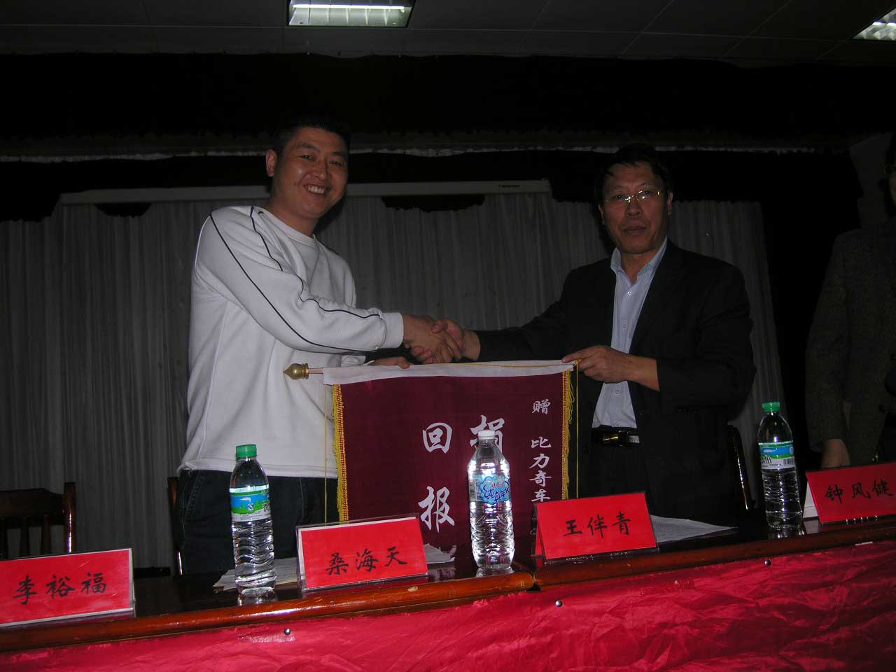 4月27日下午,学校举行“比力奇远鹰电动车助学金”发放仪式,副校长王伴青、比力奇车业有限公司总经理桑海天出席仪式并讲话,王伴青向桑海天赠送了锦旗。学工处长钟凤健主持颁奖会,学工处副处长李裕福宣读获奖者名单。