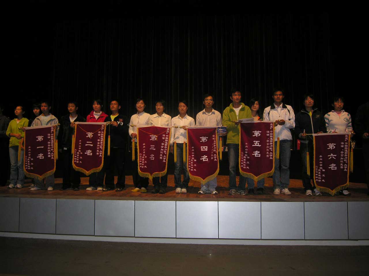 副校长王伴青,保卫部、党委宣传部负责人观看了决赛。王伴青为获得优异成绩的代表队颁发了奖杯和奖旗,保卫部廖万民部长及宣传部焦火红副部长为获得优秀组织奖的学院颁发了奖旗。