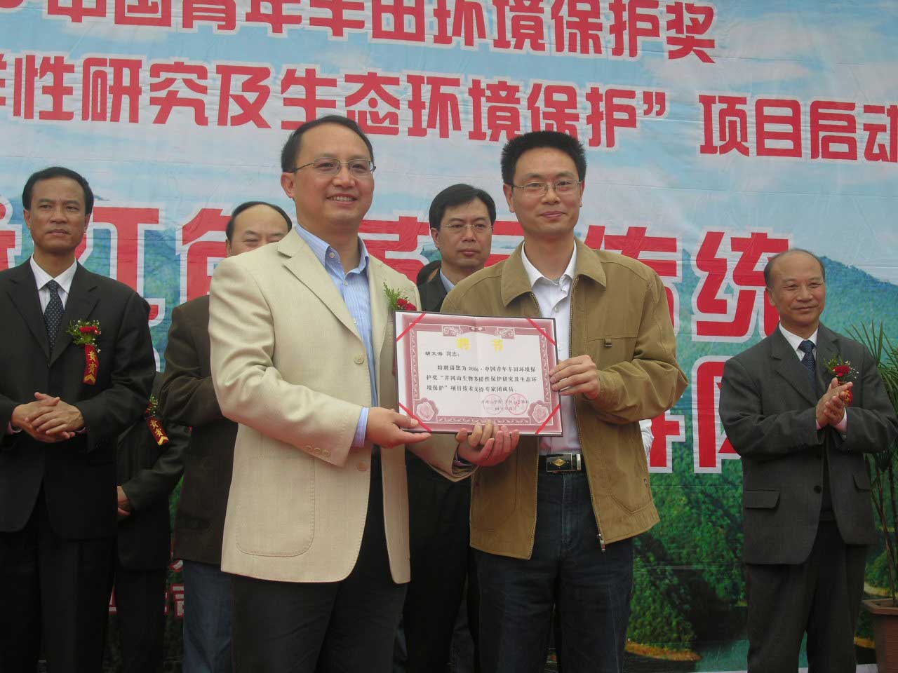 4月21日,由我校申报的“井冈山生物多样性研究及生态环境保护”项目在井冈山举行启动仪式,标志着第二届“中国青年丰田环境保护奖”获奖项目正式启动。全国青联国际项目合作中心项目部部长陆铁钧,共青团江西省委副书记王少玄,校党委书记万继抗、党委副书记孙甦,井冈山管理局党工委副书记、副局长刘晓明,共青团江西省委青农部部长李菲,共青团吉安市委书记刘智艺,江西电信吉安分公司负责人,井冈山国家级自然保护区管理局副局长王央生等出席启动仪式,副校长王伴青主持启动仪式。出席仪式的领导和嘉宾为井冈山学院井冈青年环保志愿者服务队授旗。