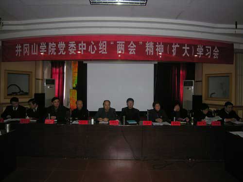 科研处龙进处长在学习发言中说,全国“两会”务实、亲民,关注民生,处处体现了科学发展观和构建和谐社会的精神。信息传媒学院党委书记罗泉铁在发言中说,“两会”对教育事业的发展非常重视,这对我们恢复建设井冈山大学,实现更名挂牌是一个极大的鼓舞。参加(扩大)学习会的还有各基层党委(总支)书记、各部门单位主要负责人、各学院院长共60余人。(焦火红)