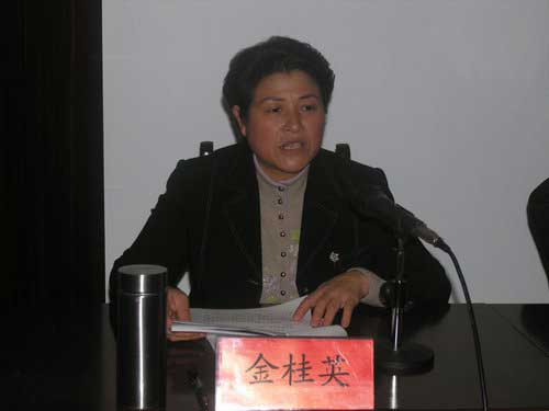 金桂英首先传达了全省统战工作会议的主要精神,重点传达了省委书记孟建柱、省委副书记王宪魁以及省委统战部部长王林森的讲话精神,接着对2006年全校统战工作进行了简要回顾。她指出,2006年,学校统战工作在学校党委的正确领导下,在省、市委统战部的具体指导下,围绕学校中心工作,求真务实,开拓创新,做好规定动作,创新自选动作,做到了“五个加强”:即加强了党委对统一战线工作的领导,加强了党外干部队伍建设,加强了民主党派工作,加强了统战性社团工作,加强了统战理论宣传工作,统战工作取得了较好成绩。