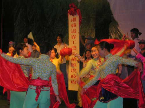 3月23日晚,由中国井冈山干部学院和我校联合创编、我校音乐专业学生演出的音乐舞蹈史诗《井冈山》,在中国井冈山干部学院举行了教学演出,取得圆满成功。中国井冈山干部学院副院长、井冈山学院校长张泰城,井冈山学院副校长罗学渭等,同在学的第3期中央和国家机关司局级干部培训班、第4期地厅级党政领导干部进修班、第24期专设班:第13期中央部委所属高校哲学社会科学教研骨干研修班、第1期党校行政学院干部院校骨干教师培训班、中组部机关入部教育培训班共180名学员观看了节目。中国井冈山干部学院部分中层干部和教职工也观看了节目。