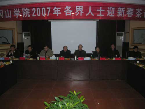 1月18日下午,学校举行各界人士迎春茶话会,校党委书记万继抗发表了热情洋溢的讲话,党委副书记金桂英主持,副校长桂国庆受校长张泰城的委托,通报了2006年学校工作情况,并展望了2007年的工作。在校的领导孙甦、康泰、郭名根、罗学渭出席会议。郭永勤出席了会议。在校的全国、省、市、区政协委员代表,在校的各民主党派市委会的主委、副主委,各民主党派组织负责人,统战社团负责人,侨眷代表,全国、全省师德先进个人代表,“感动吉安新闻人物”代表,职工代表,离退休老同志代表以及党、政机关有关部门主要负责人参加会议。