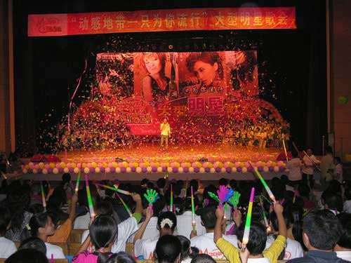 10月22日晚,由中国移动吉安分公司、吉安人民广播电台“井冈之声”主办、校党委宣传部协办的2006“动感地带”大型明星演唱会在我校举行。吉安市委常委、宣传部长李文彩应邀到场观看,市政协副主席、副校长康泰等随同。全校一千多名师生观看了节目。