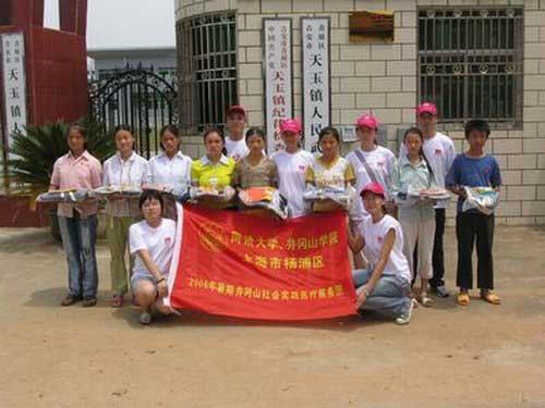 7月7日,同济大学医学院部分大学生、井冈山学院医学院和信息科学与技术传媒学院部分大学生和上海市杨浦区卫生系统青年团员联合组成的青年志愿者服务队一行50多人来到青原区天玉镇,开始了为期2天的送医送药活动。志愿者们以火热的情怀为当地农民免费送医送药,为部分品学兼优的中学生赠送了书杂费。吉安市卫生局领导,校团委、医学院领导以及天玉镇党政领导等出席了挂牌仪式。