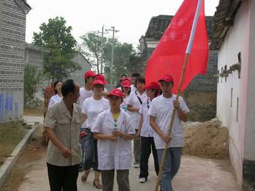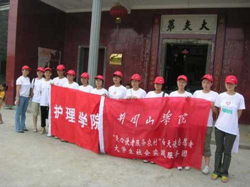 泰和县增庄村是吉安市三个社会主义新农村建设示范点之一。按照中央关于新农村建设“生产发展、生活富裕、乡风文明、村容整洁、管理民主”的二十字方针,为全面提高文明新村建设水平,我校医学院、护理学院与该村签定了协议,在该村建立了社会实践基地,两个专业的部分大学生利用每年暑期和节假日,到该村开展一系列活动,包括以宣传挂图、宣传手册、走访等形式,进行“八荣八耻”宣传活动;开展卫生健康知识宣传活动;开展义诊和送医送药活动;到镇街道和敬老院等地开展奉献爱心、文艺演出活动;此外还与当地乡亲一起生产劳动等。大学生表示,要用自己所学的专业知识,通过开展系列活动,既为新农村建设作贡献,同时又使自己在活动中受教育、长才干。