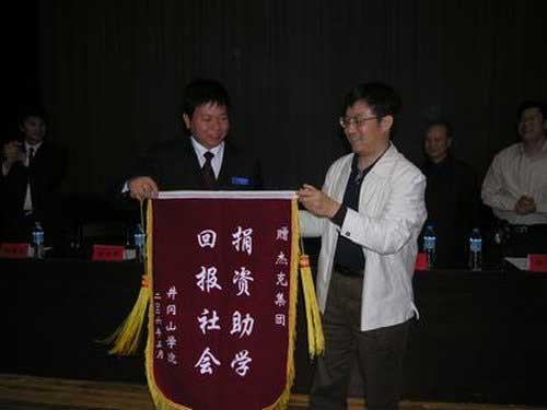陈华贵首先向130名获得杰克奖学助学金的学生表示热烈祝贺。他说,杰克集团在取得发展以后积极支持社会公益事业,勇担社会责任,真情回报社会,自2005年开始在学校设立了300万元“杰克奖学助学基金”,每年从中拿出10万元利息来奖励品学兼优的学生。在学校设立基金的目的就是要唤起社会各界对老区教育事业的关注和支持。他鼓励学生要刻苦学习、努力钻研,自力更生、奋发图强,勇于面对困难和挫折,把自己锻造成国家和社会的栋梁之才,把自己打造成新一代知识青年,将来学成以后以一颗感恩之心回报社会。
