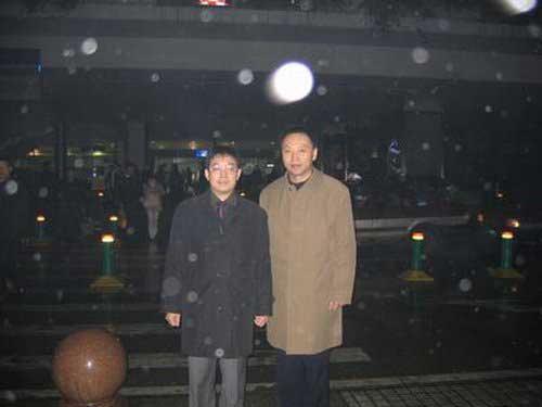 张泰城到机场迎接钟秉枢一行 张泰城和钟秉枢合影留念