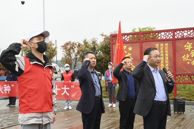 曾建平带领学校 “映山红”团队全体师生一行近20人在贺页朵誓词广场种植映山红、播撒红色火种,师生们挥锹培土,将井冈山大学青年学子们赠予的一株株映山红种植在这片遍布红色印记、传承红色基因的土地上。在贺页朵誓词广场,党员师生们面向党旗重温入党誓词。随后一同参观了中共永新县东南特别区委地下交通站旧址和誓词陈列馆,该馆珍藏了最早誓词物证——贺页朵1931年入党时宣誓的誓词。
