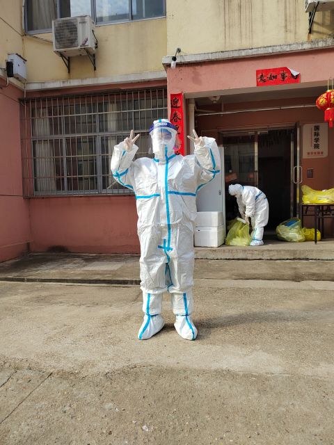 红志班学生协助医务工作者进行核酸采样及垃圾处理等工作