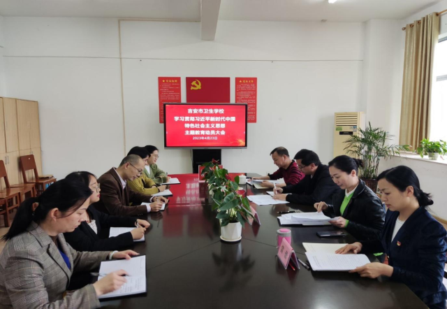 4月23日,吉安卫校召开学习贯彻习近平新时代中国特色社会主义思想主题教育动员大会,联系卫校的校党委常委、宣传部长肖洪海到会指导并讲话,卫校党委书记王静作部署动员讲话,卫校全体处级干部、全体党员和入党积极分子参加了动员大会。
