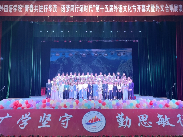为丰富校园文化生活,彰显外语办学特色,4月20日,外国语学院举办“青春共进抒华茂,语梦同行颂时代”第十五届外语文化节开幕式暨外文合唱展演。校党委副书记刘祖文宣布外语文化节开幕,校党委常委、副校长肖宜安,校长助理张赫出席,校团委书记肖晓致开幕辞,外国语学院院长袁邦株讲话。校学生工作处、团委、教务处负责同志出席开幕式,外国语学院班子成员、全院师生参加活动。