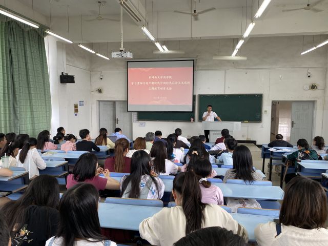 黄秋如从主题教育的重大意义、目标要求、组织安排三方面对商学院主题教育作了动员部署。要求学院党委、党支部和全体党员、干部要认真贯彻党中央、省委及校党委部署要求,深刻领会主题教育的重大意义和内在要求,全面把握主题教育的目标要求和根本任务,确保实现主题教育的预期目标和质量效果。要把开展好主题教育作为重大政治任务,增强用习近平新时代中国特色社会主义思想凝心铸魂的政治使命感,提升用习近平新时代中国特色社会主义思想凝心铸魂的实际成效,切实把理论学习、调查研究、推动发展、检视整改等贯通融合、一体推进,解决理论学习、政治素质、能力本领、担当作为、工作作风、廉洁自律方面的问题,做到以学铸魂、以学增智、以学正风、以学促干,把主题教育焕发出的热情和干劲持续转化为推进学院高质量快速发展的强大动力,促进学院党的建设、人才培养、科学研究、服务社会等各项工作不断取得新成绩。