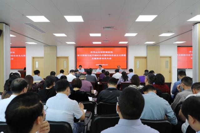 4月21日上午,井冈山大学附属医院召开学习贯彻习近平新时代中国特色社会主义思想主题教育动员大会。大会深入学习贯彻习近平总书记在中央主题教育工作会议上的重要讲话精神,按照井冈山大学党委统一部署,对全院主题教育工作进行动员。井冈山大学校党委常委、统战部部长刘梁军出席指导,院党委书记肖游章做动员讲话,院党委副书记、院长谭立宇主持发言,院领导班子成员出席会议。各党支部委员、全体中层干部、党员代表、群众代表参加。