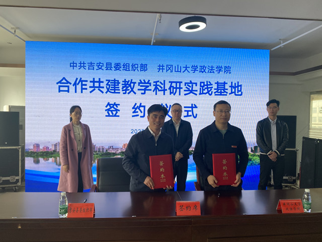 4月12日,政法学院和中共吉安县委组织部在吉安县高层次人才综合服务馆签订共同建设教学科研实践基地合作协议。中共吉安县委副书记、副县长崔卓,吉安县委常委、组织部长王头生,吉安高新区党工委委员、管委会副主任刘文恒,政法学院党委书记吴高平,共同出席仪式并签约。