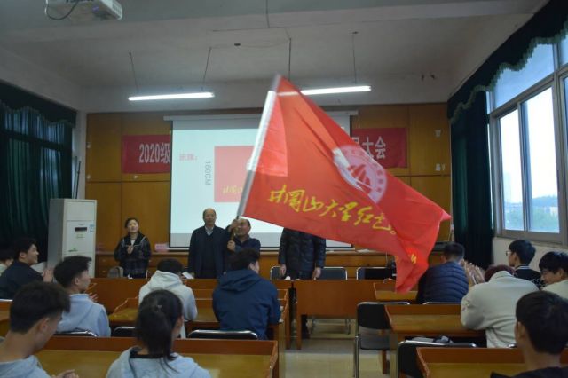 仪式在嘹亮的国歌声中揭开序幕。会上,宣读了培养方案、班级管理细则及考核办法,明确了班徽、班旗、班歌、班训,并就创作设计和选用做了解释说明。王佳筱同学作为学生代表发言,罗曙琼讲话并为“红色摇篮”班授班旗。