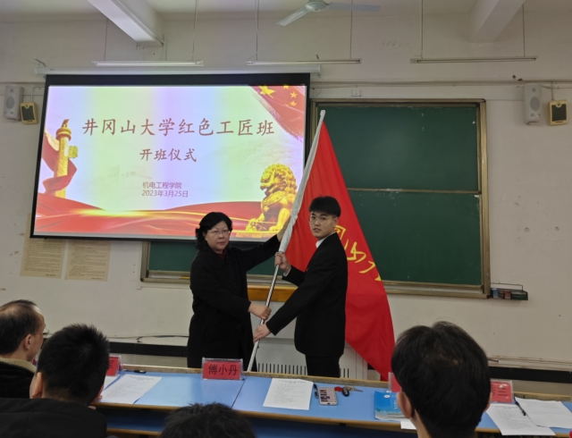 为深入学习贯彻党的二十大精神,进一步加强和改进青年学生思想政治工作,落实立德树人的根本任务,赓续红色血脉,传承红色基因,3月25日下午,机电工学院举行井冈山大学红色工匠班开班仪式。机电工程学院全体辅导员和红色工匠班全体学员共计60余人参加开班仪式,党委书记傅小丹出席并讲话。