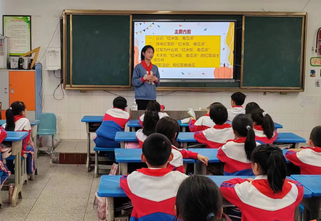 课堂上,红色小分队成员综合运用游戏互动、影像教学、体验教学、故事讲解等多元教学手段,引导小学生科普认知南瓜何以成为红军食物,体验思考南瓜汤的“苦”在何处,阅读重温井冈山革命英雄在井冈山的艰苦记忆。特别是拥军搬南瓜的互动设计,让红色文化在课堂上“活”起来,与此同时也极大地激发了授课大学生当好红色基因的传承和实践者的自觉意识。