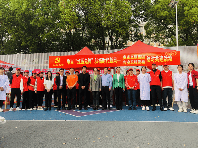 3月16日下午,吉安卫校党委与奥克文旅集团在南门小街广场开展了“争当‘红医先锋’,弘扬时代新风”结对共建活动,开启了优势互补、资源共享、文化互融、工作互促的良好局面。卫校全体班子成员、教工志愿者、学生志愿者和奥克文旅集团员工参与了活动。