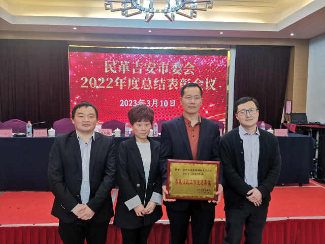 3月10日,民革吉安市委会召开了2021-2022年度总结表彰大会。吉安市委常委、统战部部长伍复康,吉安市社联主席、民革吉安市委会主委周忠平出席表彰会。民革井大总支获得“民革吉安市委会2021-2022年度参政议政工作先进集体”荣誉称号。民革井大总支主委王传顺被评为参政议政工作先进个人,副主委刘朝晖被评为反映社情民意信息工作先进个人。王传顺、刘朝晖、欧阳明亮、肖丽群、肖智勇等五人获评民革优秀党员。