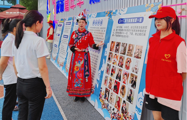 吉安卫校少数民族教工身穿本民族服装服饰,志愿者们身穿红马甲,围绕“民族团结一家亲”向群众宣讲民族宗教法规政策和知识,讲解少数民族的特点、居住地、发展史和服饰特点。切实增强了广大群众对民族政策和民族法律法规的认知认可。