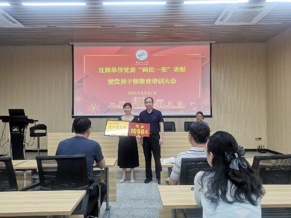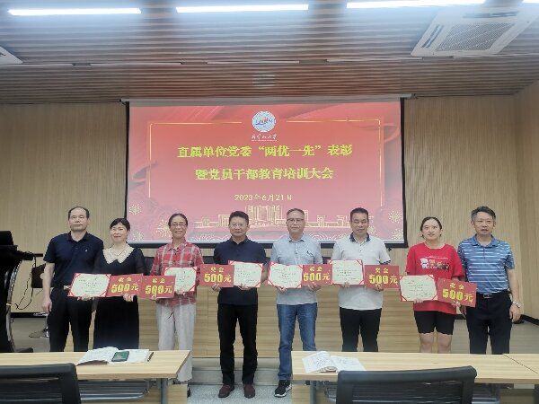 直属单位党委委员、创新创业学院院长王文峰宣读了《井冈山大学直属单位党委关于表彰先进党支部、优秀共产党员、优秀党务工作者的决定》,获奖先进基层党组织和优秀共产党员代表上台领奖。党委书记马于强代表直属单位党委向受到表彰的先进集体表示热烈祝贺和诚挚慰问,向努力拼搏、艰苦奋斗的党员表示崇高敬意和节日的问候。他指出,这次受表彰的集体和个人以实际行动守初心、担使命,恪尽职守、开拓进取,体现了践行党的宗旨、全心全意为人民服务的崇高追求,展现了新时代教育工作者的良好风貌,是可亲可敬可学的先进代表。他希望受到表彰的基层党组织和个人珍惜荣誉、发扬成绩、再接再厉,争取更大光荣。其它基层党组织和全体党员干部要向受到表彰的先进集体和个人学习,落实全面从严治党主体责任,自觉维护党的团结统一,全面加强领导班子和干部队伍建设、基层组织和党员队伍建设,不断增强政治功能和组织功能,高标准落实主题教育各项要求,要锤炼党性,做坚定理想信念的表率;要真抓实干,做推动高质量发展的表率;要维护稳定,做构建和谐校园的表率;要严守纪律,做清正廉洁的表率;要主动作为,做攻坚克难的表率。各单位要形成崇尚先进、见贤思齐的浓厚氛围,激励广大党员、干部牢记党的性质宗旨,牢记党的初心使命,不懈奋斗、永远奋斗,为学校的高质量发展作出更大贡献。