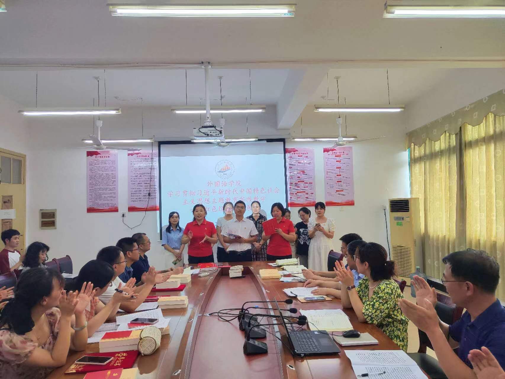 换届会结束后,在六楼党员活动室召开全体党员会议,学院党委书记胡闽华代表学院党委向本次换届会议的成功举办,顺利选举出新一届的支委表示热烈的祝贺。她指出,党支部的顺利换届,是外国语学院党委和各党支部的一件大事,也是全体党员政治生活中的一件大事,对推进外国语学院内涵发展、以党建促引领具有重要的意义。她希望,全体党员和产生的新一届支委一道,继往开来、接续奋斗,着眼新时期党的建设要求,与时俱进、开拓创新,积极投身正在开展的主题教育,切实用主题教育的高质量成果推动学院各项事业的高质量发展。要抓学习,打开视野,补精神之钙;要讲责任,凝聚责任,办群众之事;要敢担当,做好表率,扬清新之风;要重实干,推进工作,铸争先意识。