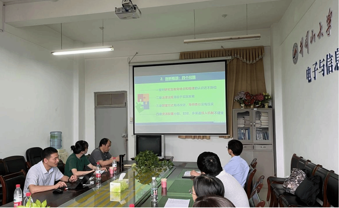 同日,江西理工大学软件工程学院刘秋明副院长和彭弯弯老师应邀来学院开展“研究生导师队伍建设”的专题培训和研讨,学院16位硕士生导师参加了会议。刘秋明副院长围绕研究生培养的政策、形势、需求,研究生导师行为准则,如何成为学生科研领航人等方面进行了深入的分析和探讨,并结合了大量的实际案例进行了生动的讲解。彭弯弯老师对江西理工大学研究生培养方案进行了简要介绍,从培养目标、课程及研究任务安排、培养举措、考核方式、保障措施五大方面进行了说明。