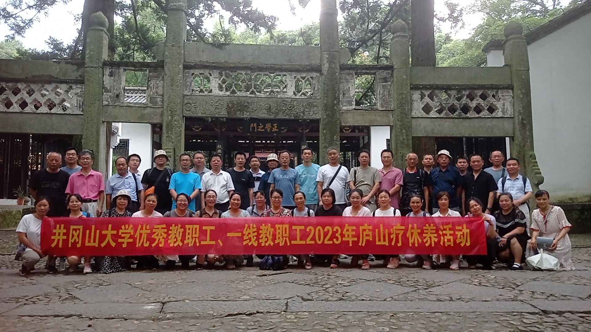 7月10日下午, 参加我校2023年暑假优秀教职工、一线教职工疗休养活动的来自各分会推荐的51位优秀教职工和3位工作人员从庐山工人疗养院顺利安全返校,至此,我校2023年暑假为期五天的优秀教职工、一线教职工疗休养活动圆满结束。