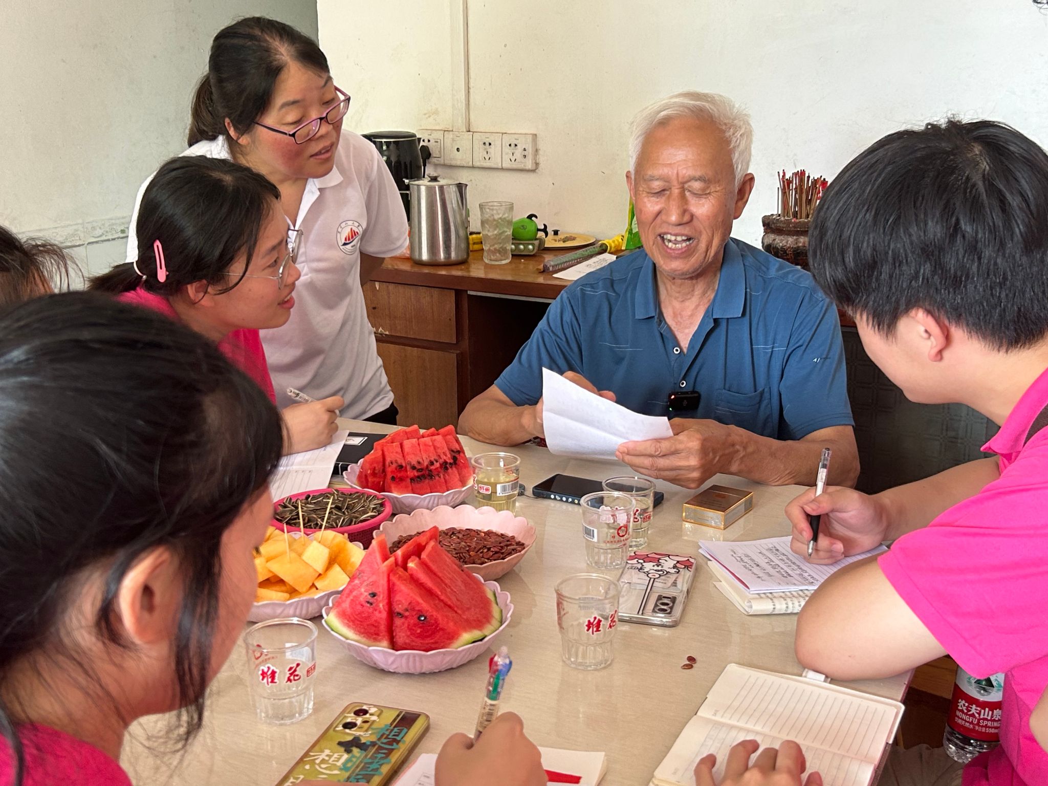 6月30日上午,坐着村干部的车,路过一片片绿油油的稻田,来到《兴国调查》中的八位农民其中的三位家中,对他们开展了小型调查会。温常鑫爷爷说到自己父亲的事情,都是自豪语气;傅济荷爷爷家庭三代都当兵,说共产党的政策好让他家的生活也变好了;黄英明爷爷则感慨万千地说,“对我个人来说,没有碰见共产党,我就活不到现在。”下午队员们再次来到长冈乡,展开进村入户式的再调查。队员分为四个小队,进入四户村民家中,帮村民干活、协助做晚饭,“拉家常”开展了调查,感受新时代农村的新面貌。
