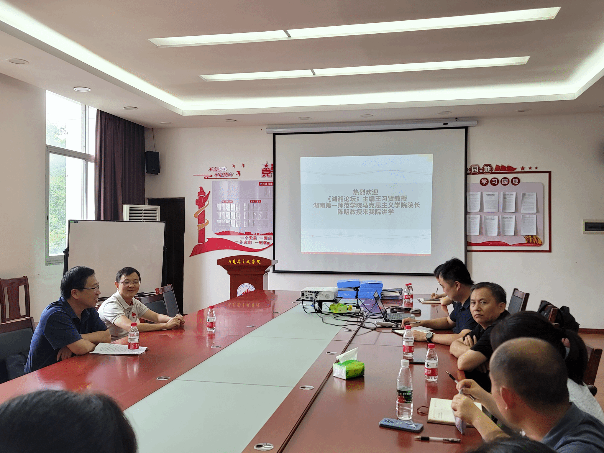 7月24日下午,《湖湘论坛》主编王习贤教授、湖南第一师范学院马克思主义学院院长陈明教授来到我院,为马克思主义学院作了主题为《如何写出高水平论文》《如何撰写国家社科基金申请书》的学术报告。报告由叶丹书记主持,学院十余位老师聆听了报告,并且积极参与了交流。