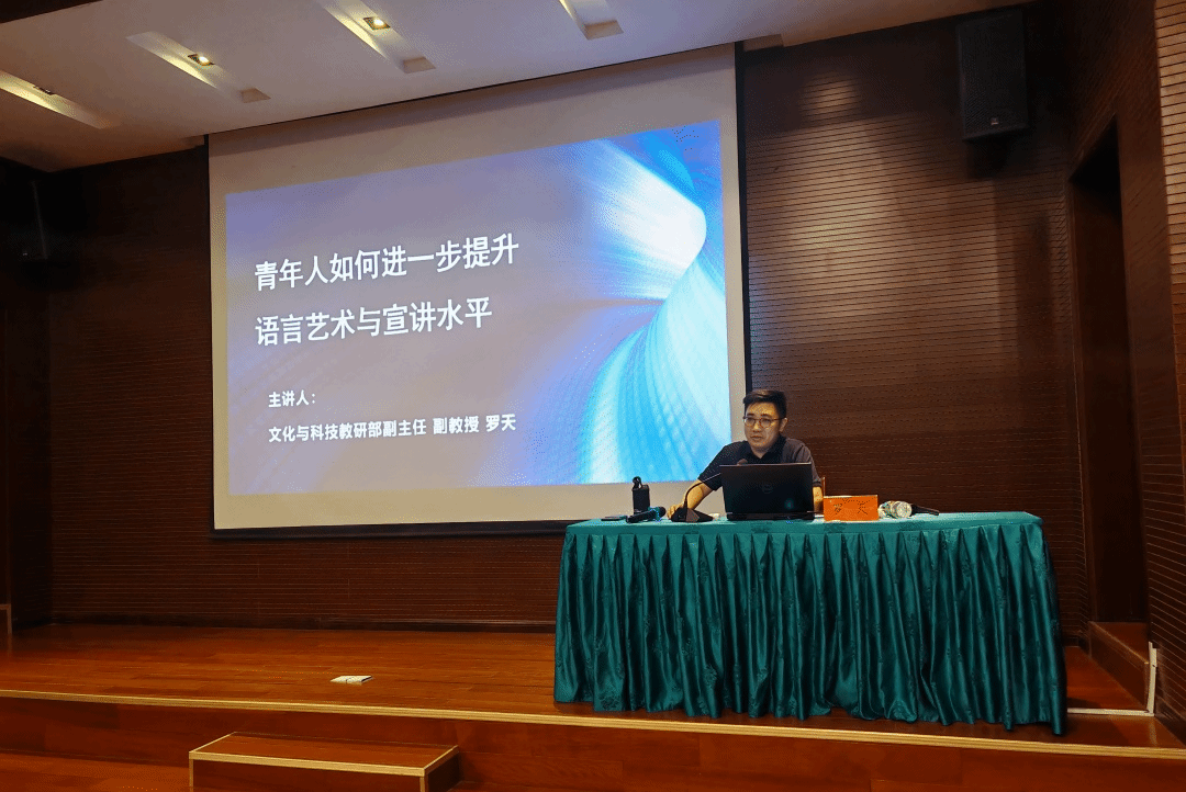 宣讲活动中,罗天以《青年人如何进一步提升语言艺术与宣讲水平》为题,从行动垂范、语言引领两个方面展开论述,提出“如何做好演讲”这个问题,通过大量的实例,幽默风趣、极具感染力的语言,具体从做足台下准备和做好台上发挥两个方面具体展开,围绕“台下准备的五要素”,图文并茂地阐释了如何做好一场宣讲,强调一场好的宣讲应当注重内容与形式的相衔接,并且针对不同的受众设立对应的宣讲目标。他还阐述了一场好的宣讲还应当将内容结构化处理,并让学员们认识了在宣讲中的四种结构,强调应当在宣讲内容中学会填充故事,设计有利于主题展开的开场和结尾。
