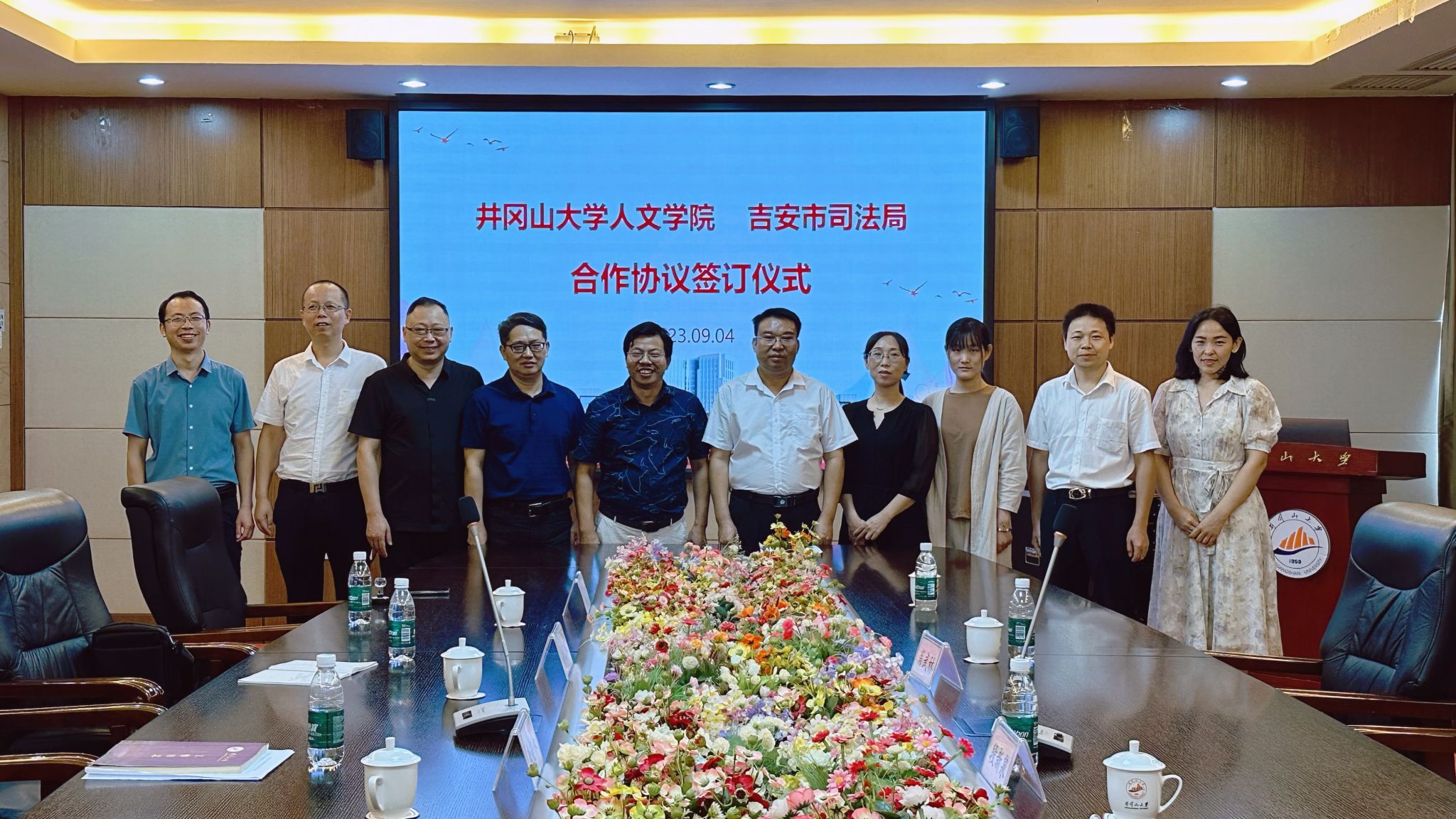 9月4日,吉安市司法局党组成员、政治部主任段新泉一行来我校座谈,与人文学院签订合作协议。人文学院院长龚奎林出席活动。