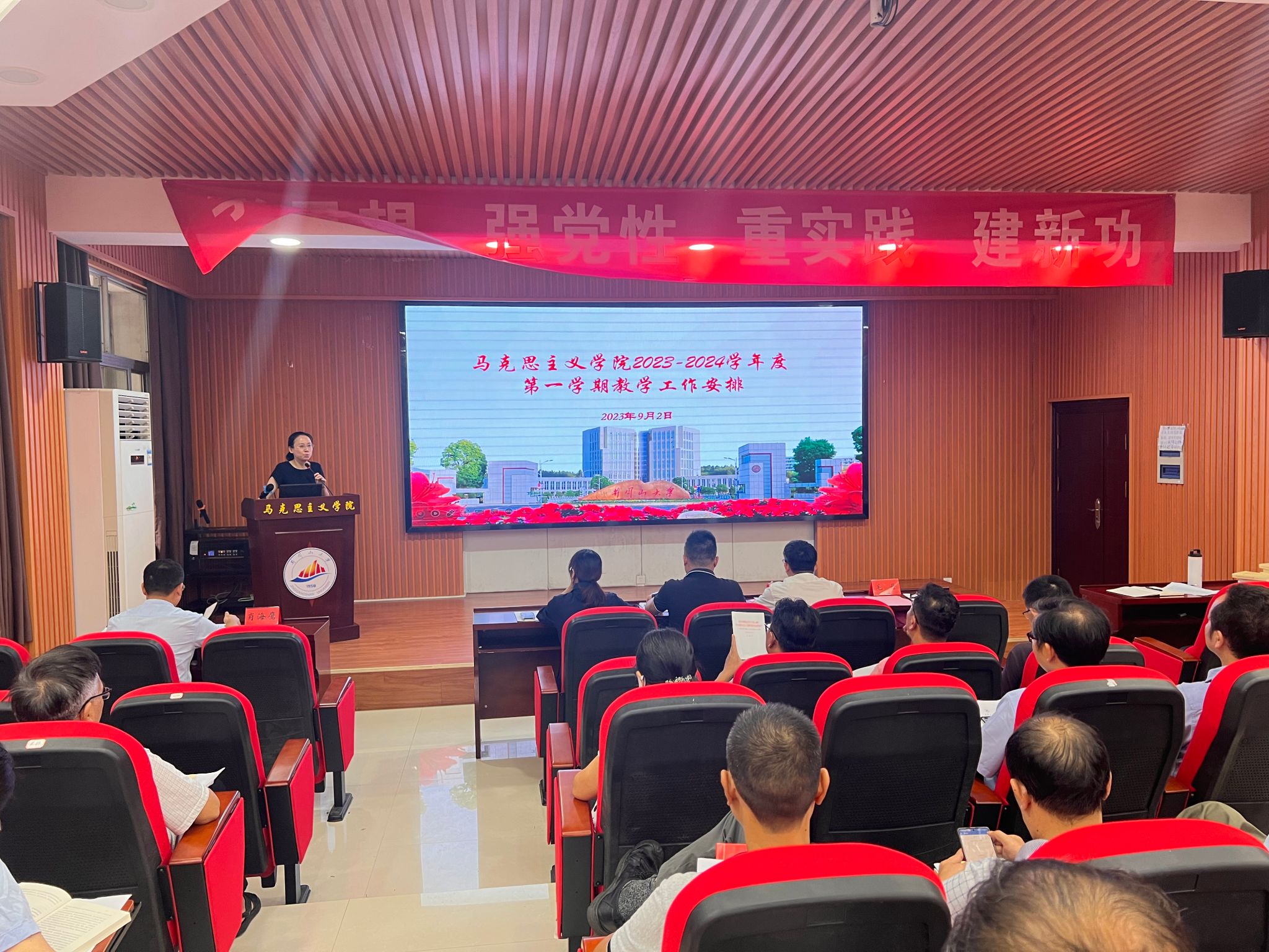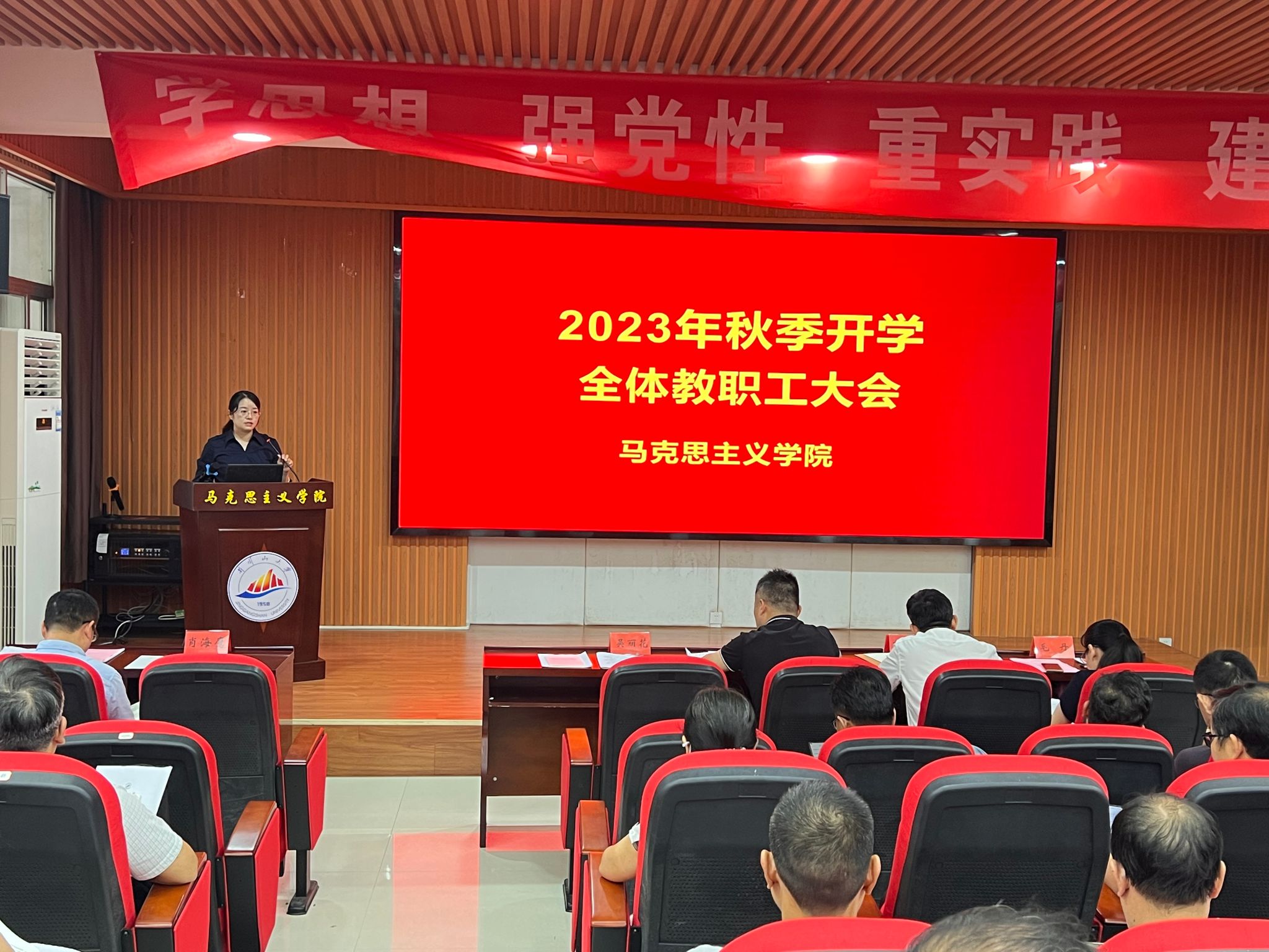 为扎实做好秋季开学工作,确保新学期各项工作稳定、有序、高效开展,9月2日上午,马克思主义学院召开了新学期全体教职工大会,会议由学院党委书记叶丹主持,全体领导班子成员及教职工参加。