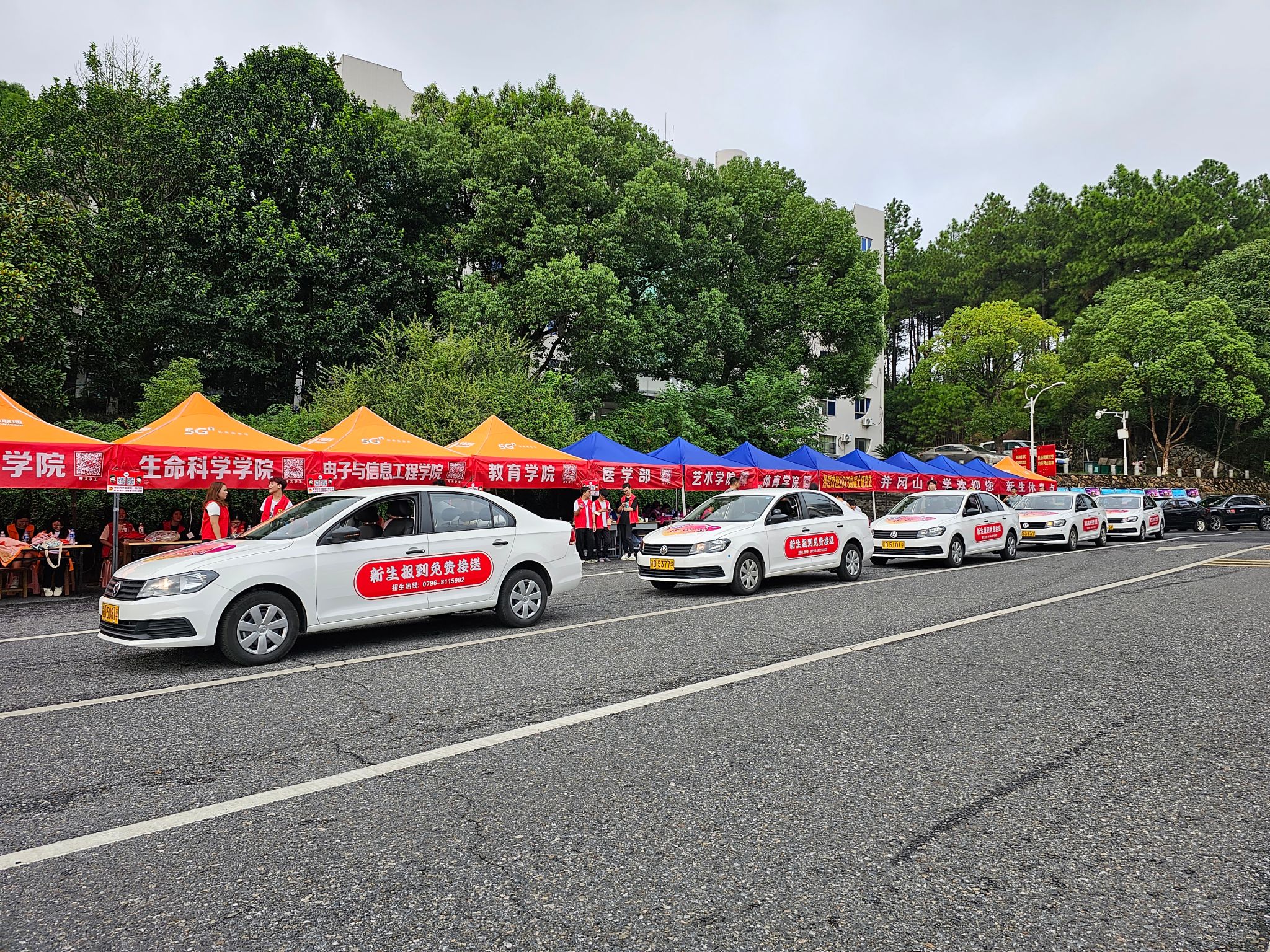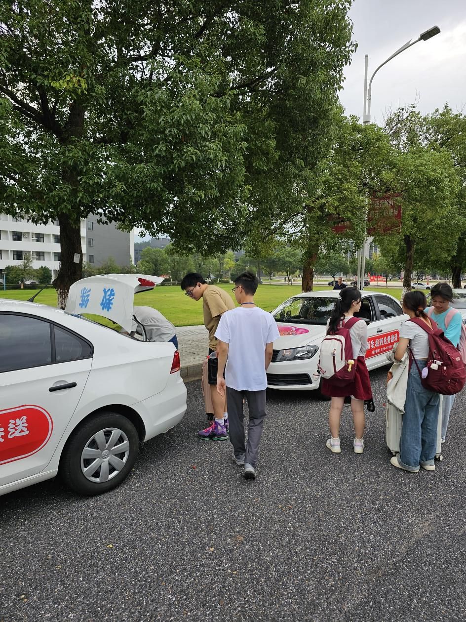 接送保障,提供校内摆渡。井大驾校制定了详细的校内迎新用车计划,全体员工安全有序,文明服务,共用了5辆驾校教练车免费接送,还有11辆校园电瓶车和6辆微公交往返接送。一辆辆迎新车从校门口报到点一趟趟开往各个宿舍楼,帮助新生及其家长将大件行李送至各学院迎新点。