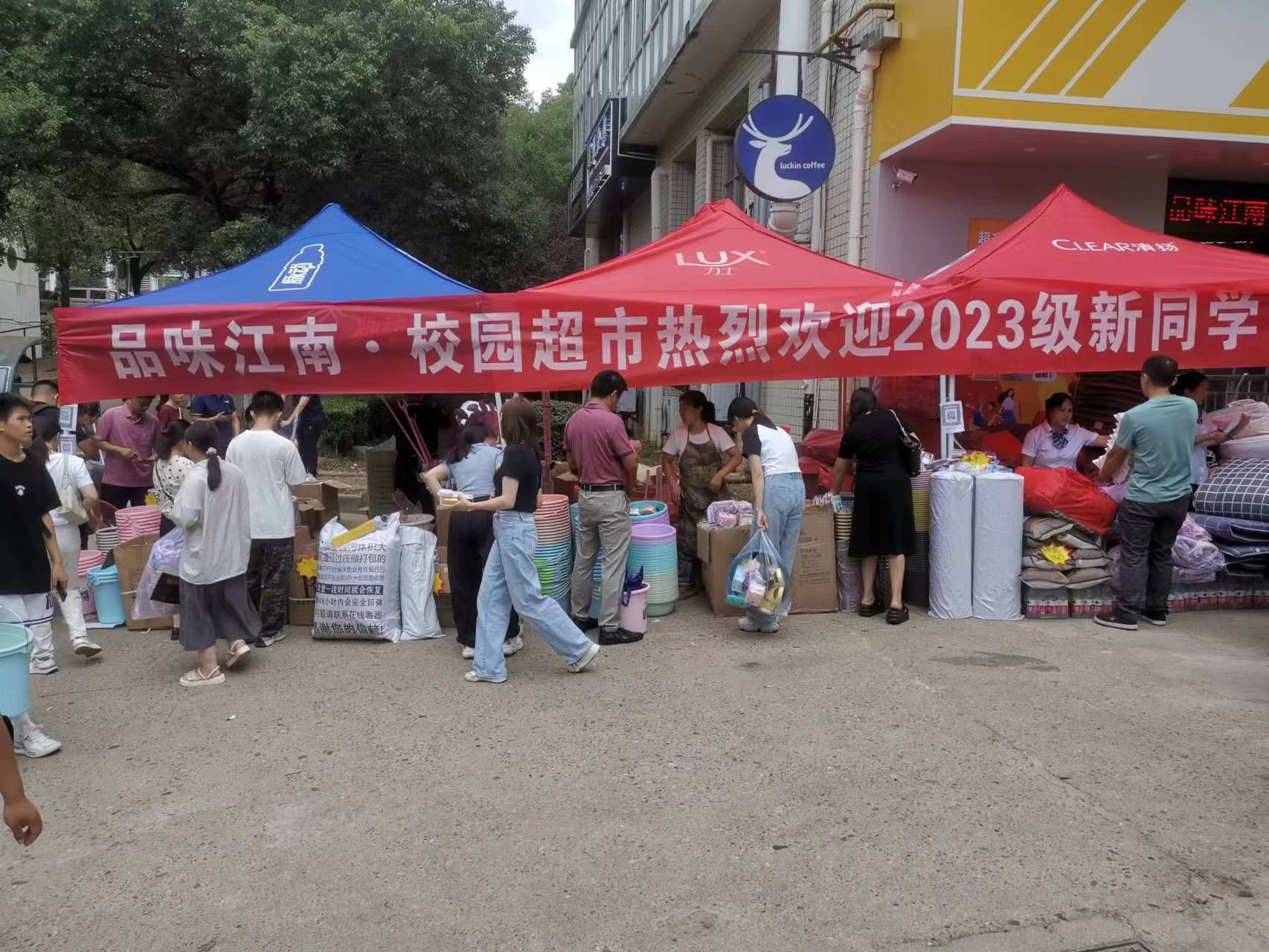 备足商品,做好生活保障。为便利新生在来校报到后购买宿舍用品和生活、学习用品,满足学生入校需求,校园超市提前备齐备足生活和学习用品,并在外面专设生活用品临时售卖场,为新生提供一站式商贸服务,同时提升监管力度,让利师生。校内所有自动售货机的饮料和食品及时补充更新,满足师生各类需求。