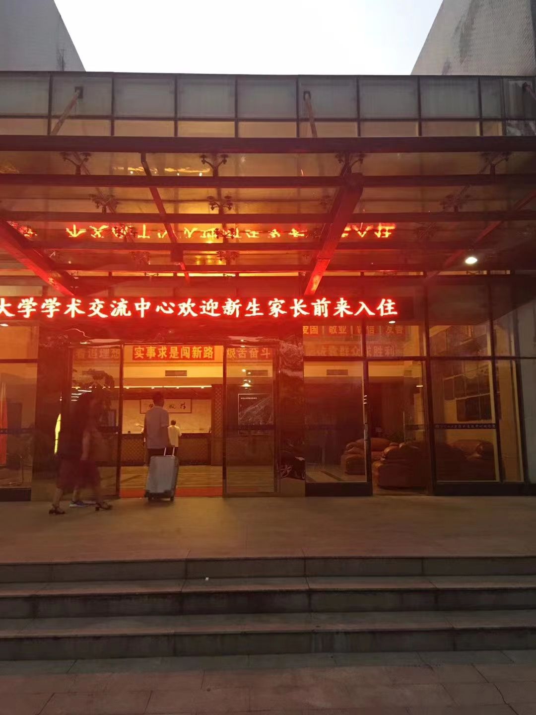 住宿接待,周到优质服务。为了使新生及家长方便快捷的找到住宿处,学术交流中心提前做好环境布置和氛围营造工作,用电子显示屏播放欢迎标语等。以宾客至上、服务第一为准则,提前对全部客房进行检查修整,在接待过程中实时更新房态信息,最大程度缩短客人的等候时间。中心全体员工热情周到的服务,为新生及家长提供了温馨、优质的住宿环境,两日入住率均达到了100%,保证了零失误、零投诉,真正做到了让学生满意,让家长放心。