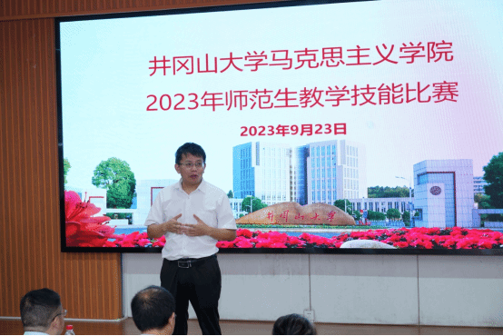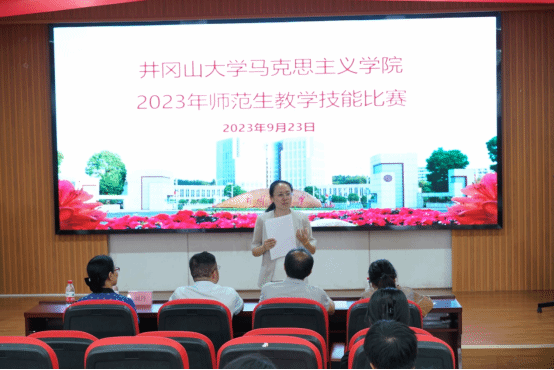 为增强师范生培养质量,提升师范生教学技能,检验师范生实习效果, 9月23日,学院在1栋学术报告厅举办2023年思想政治教育专业师范生教学技能比赛。本次竞赛邀请吉安四中燕芝、井冈山经济开发区同心中学副校长许自平、井冈山大学附属中学刘文、吉安一中刘丹、刘琳琳5位老师担任评委,院长肖发生作动员讲话。20思政、21思政、22思政共17位选手参加比赛。
