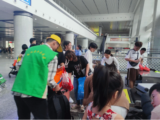 本次志愿服务活动主要是为了解决中秋国庆长假期间,吉安高铁西站人流量拥挤问题,为往返旅客构建一个和谐、井然的出行环境。井大志愿者在相关工作人员的指引下,提前了解旅客可能会存在的问题并学习相关解决方案,确保了志愿活动有序开展。在志愿活动进行过程中,志愿者分布在扶梯口,服务台,电子闸机口,出站口等位置,为来往的乘客做好安全提醒,解答各种疑难问题,提供各种周到的服务。活动过程中,有一位盲人旅客下火车后需要乘坐长途汽车,出站口的志愿者们毫不犹豫的选择延长志愿服务时间,将盲人旅客送至长途汽车站,与工作人员交接后才放心离开,有效的履行了青年志愿者的使命。