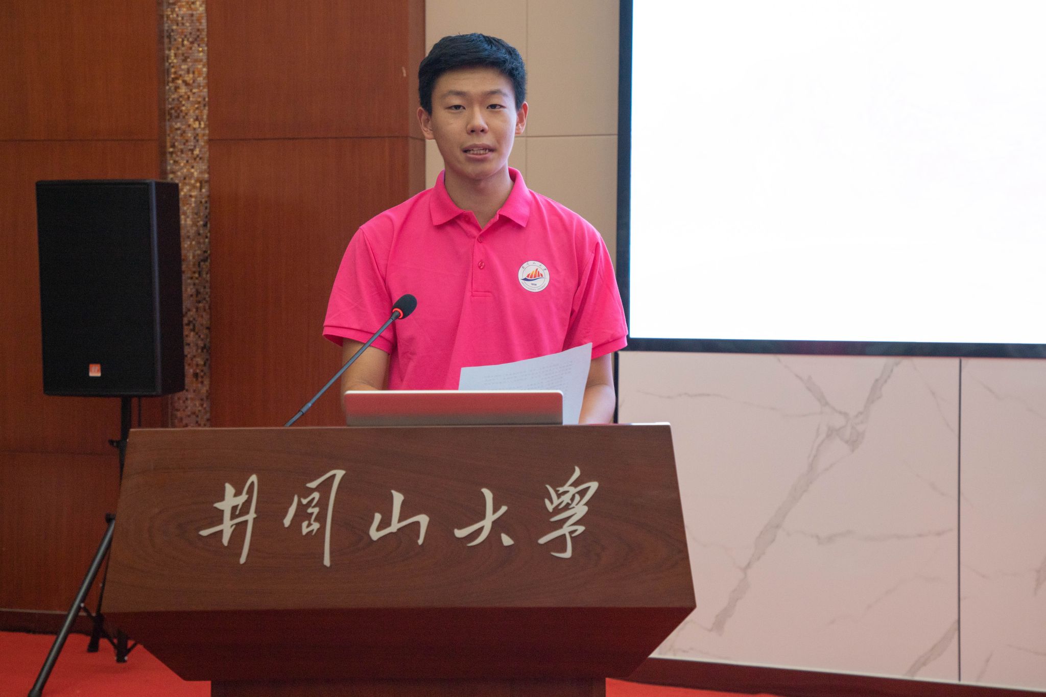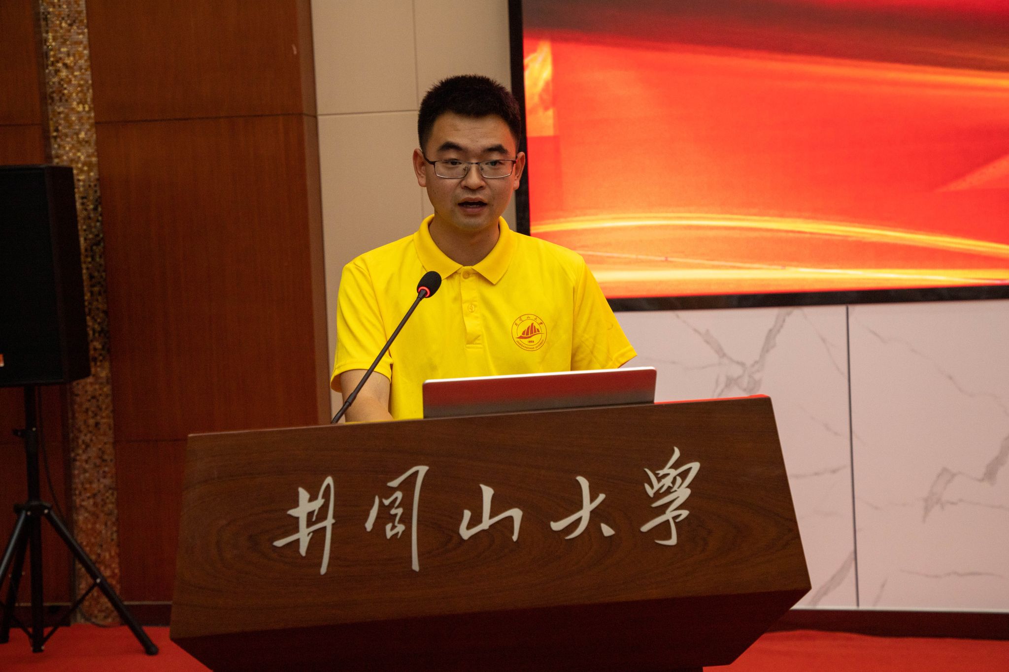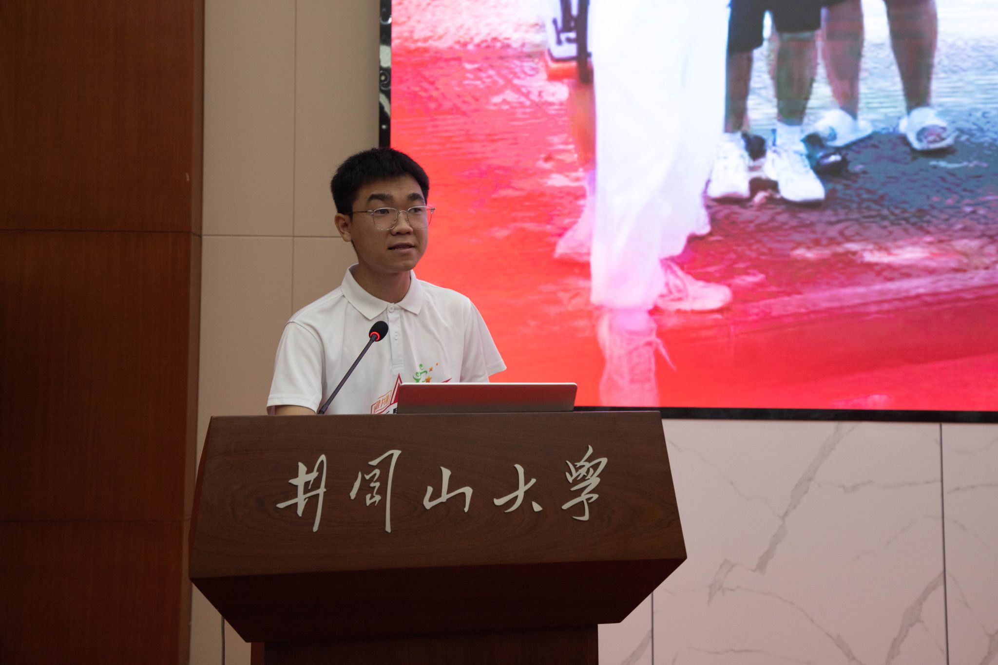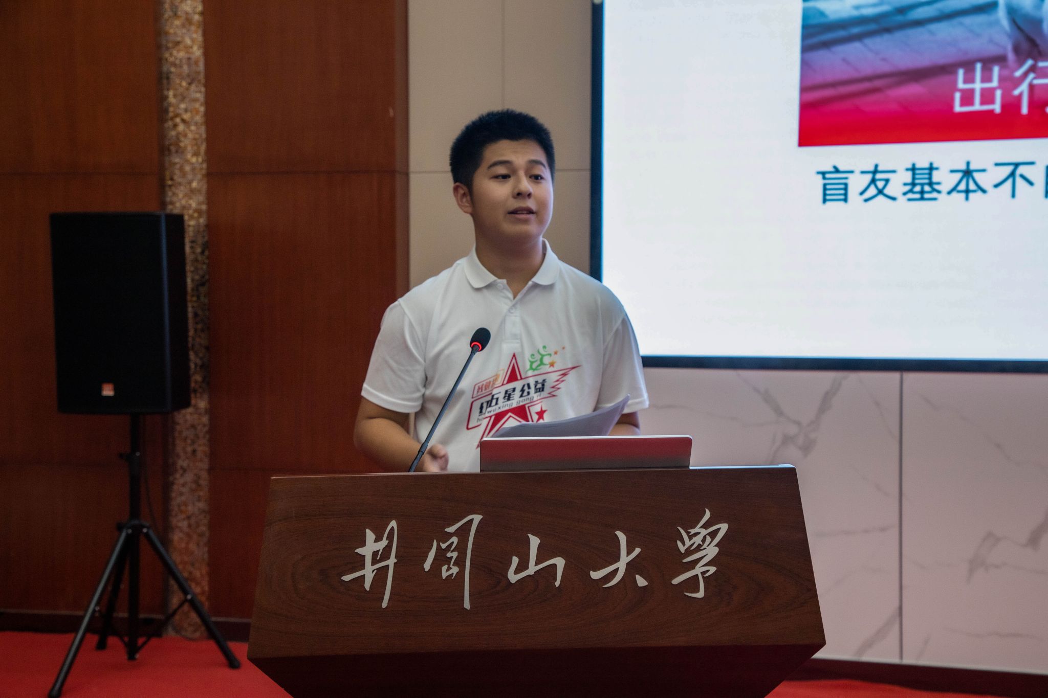 艺术学院的阳光同学以《用阳光的心态,做阳光的事,铸就阳光的人》为题,结合参与盲跑活动的经历和红五星残健共融公益中心建立的艰辛历程,他表示将带领团队积极开展助盲跑、志愿者培训、口述影像等多种活动,立志打造助盲公益的“井冈样板”,走出新时代的一条长征路,将红五星之光照耀在祖国的大地上。